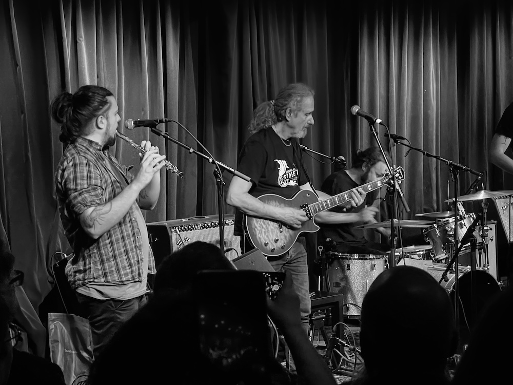 Att det funkar så otroligt bra är till stora delar trummisen Viktor Henrikssons förtjänst. En av de bästa och mest hårdslående trummisar jag hört på länge. Tillsammans med basisten David Eriksson bildar han en förträffligt stadig och livfull rytmsektion. Att Coste Apetrea är en fantastisk gitarrist vet vi sedan urminnes tider och alla möjliga olika sammanhang. Men att han rekryterat en likaledes formidabel gitarrist vid namn Petter Heineman är värt en lång applåd. Deras unisona, ofta i stämmor, manglande av riff är ljuvligt att höra. Jimi Apetreas tvärflöjt ger glitter till det massivt rockiga men har förstås lite svårt att riktigt göra sig gällande.